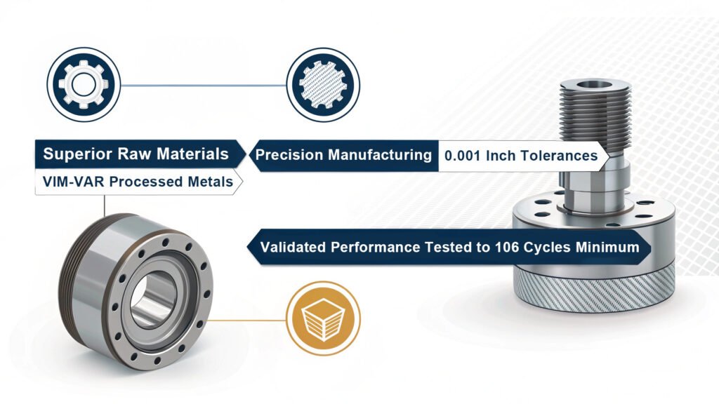 True quality components combine three elements: superior raw materials (VIM-VAR processed metals), precision manufacturing (±0.001" tolerances), and validated performance (tested to 10⁶ cycles minimum).