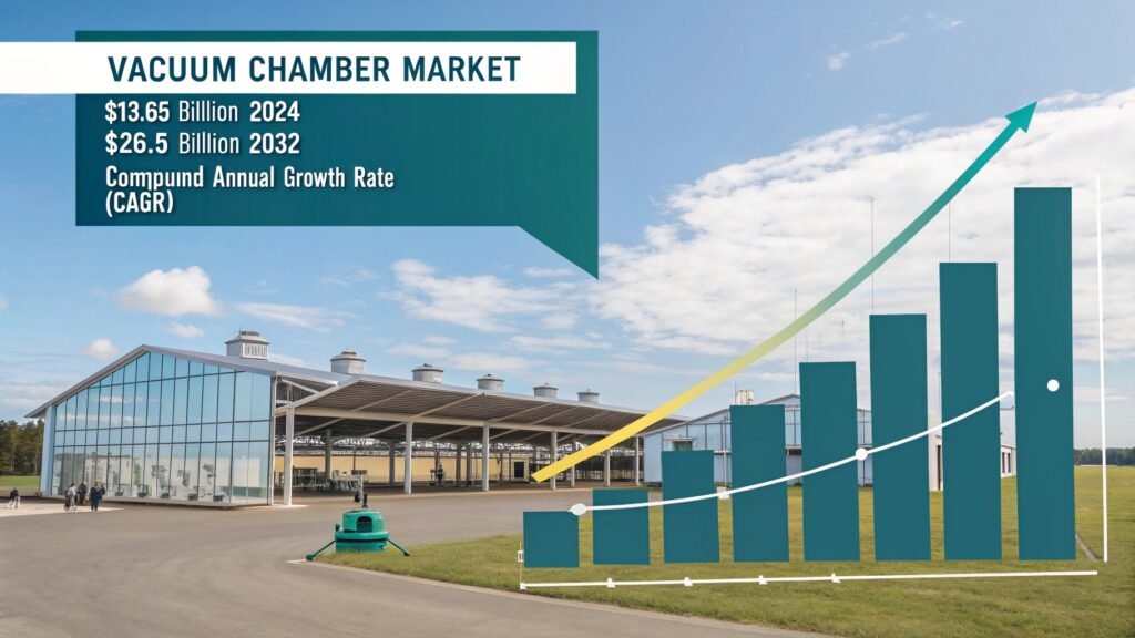 The vacuum chamber market is projected to reach $13.65 billion by 2024, with expectations to surpass $26.5 billion by 2032. It reflects a robust growth trajectory driven by industries like semiconductors, aerospace, and research, maintaining a Compound Annual Growth Rate (CAGR) of around 8.2%.